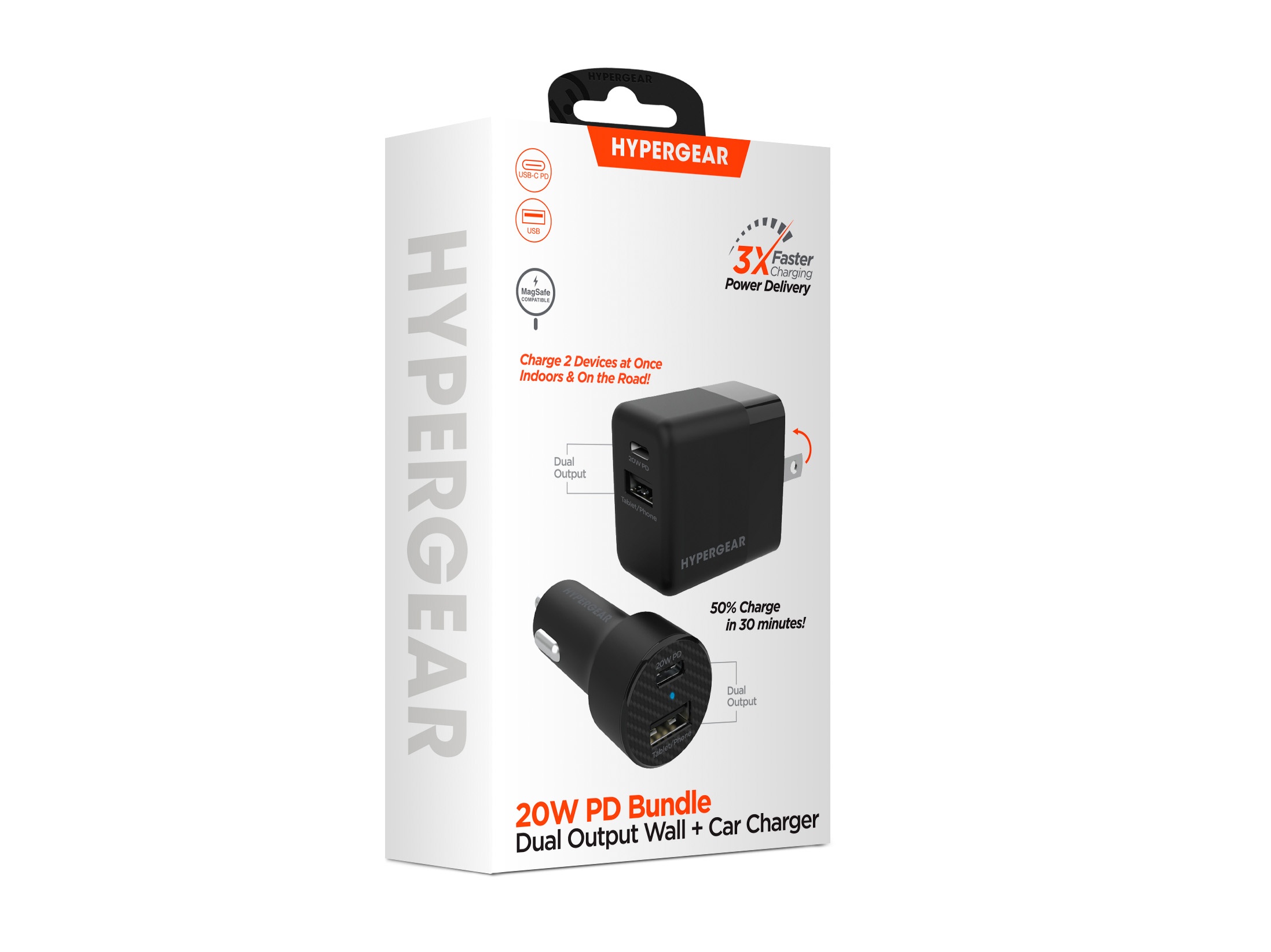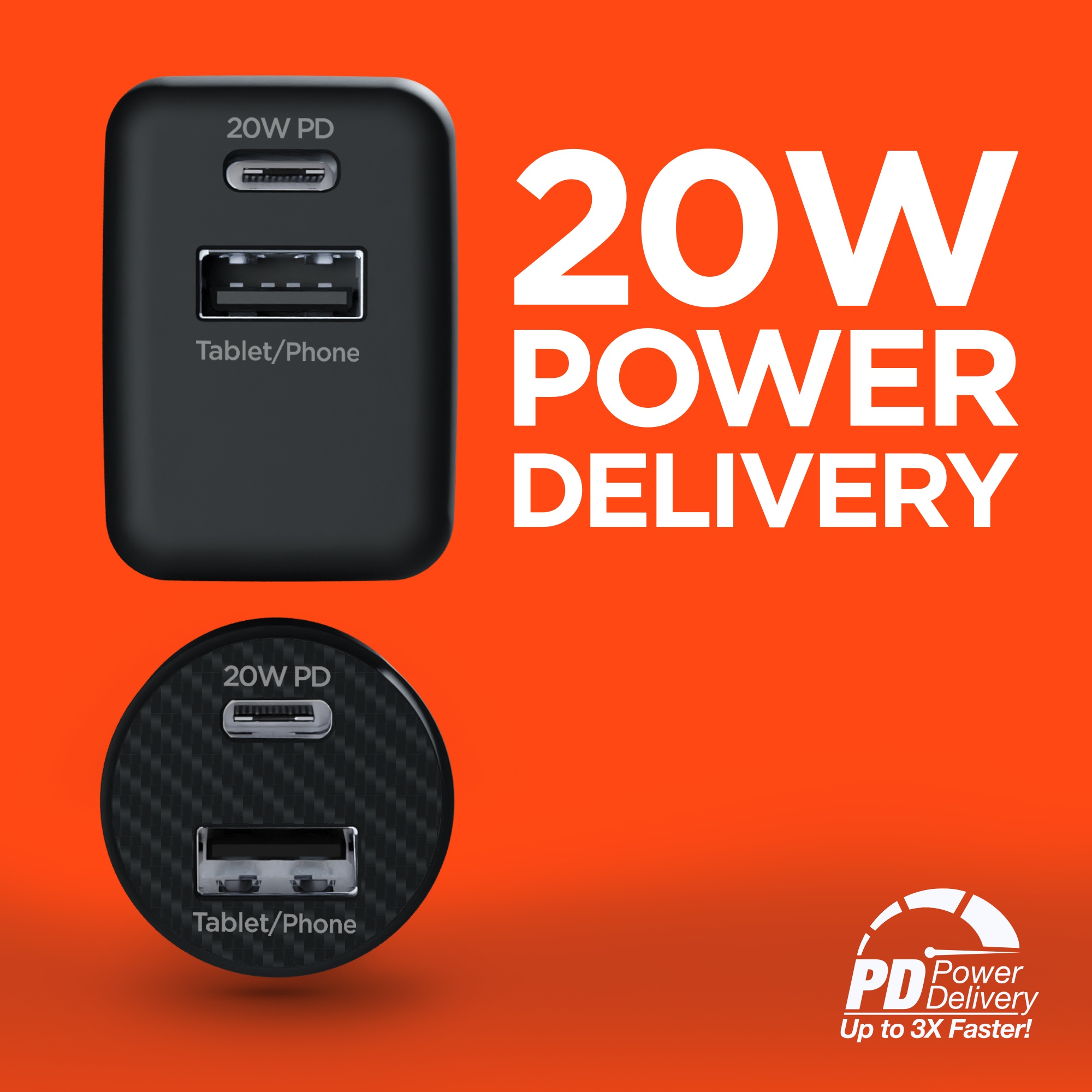 Experience the fastest charging wherever you are with the ultimate Power Delivery bundle. This bundle pairs two dual output chargers with 20W USB-C PD and 12W USB ports, for high-speed charging at home and on the road! With over 4X the power of standard chargers, it is perfect for power-hungry devices and can fast charge the latest iPhone or Android from 0 to 50% in just 30 minutes! Devices that aren’t PD compatible will still charge at the fastest speed available with the universal 12W port. Made for travel, both chargers are incredibly compact and designed not to clutter any outlet. Now you can enjoy the latest in high-speed technology wherever you go!
